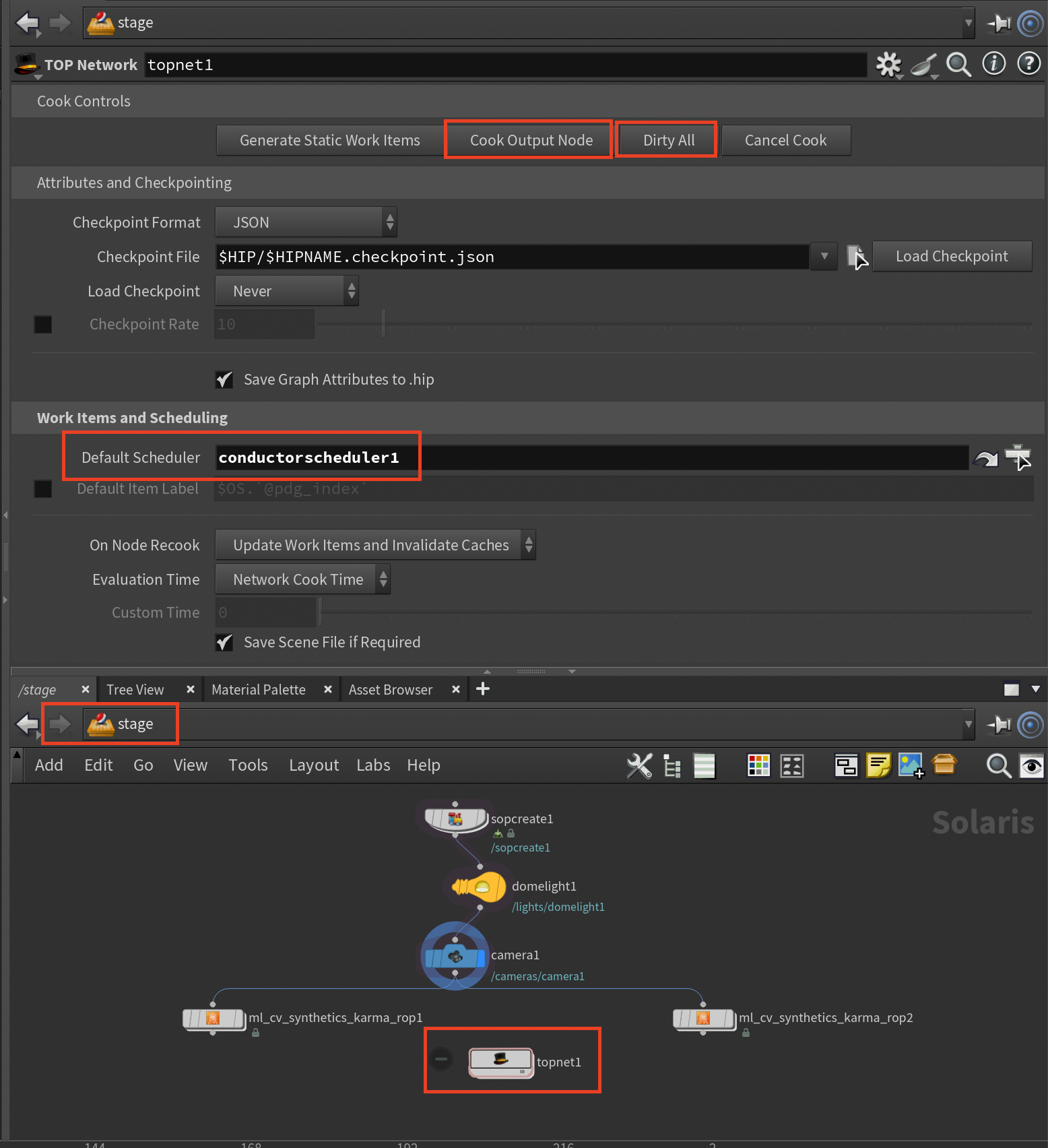 Select your TOP Network node and enter the name of your Conductor Scheduler, e.g. "conductorscheduler1" as the Default Scheduler of the TOP Network node.