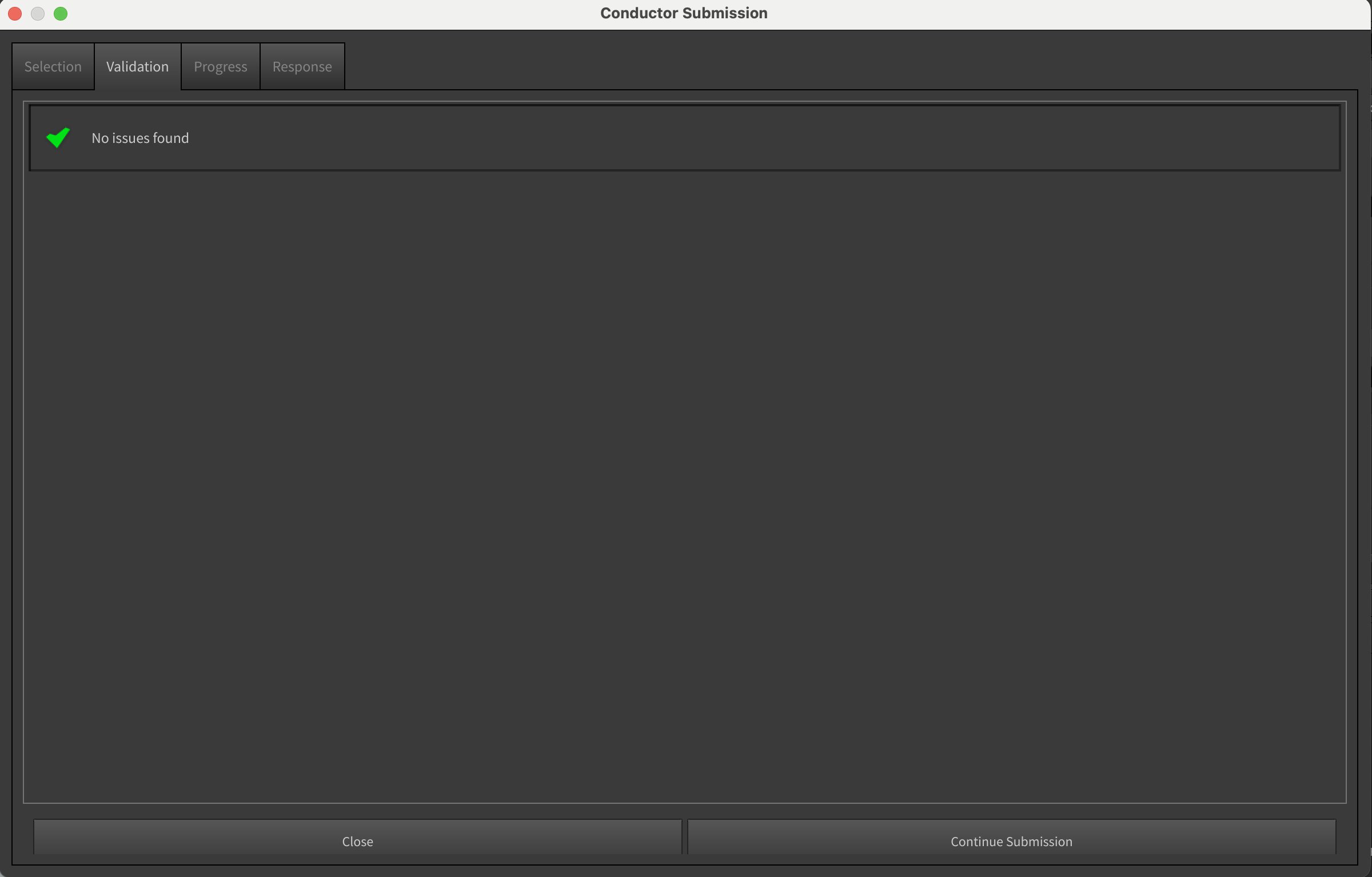 In a few seconds, you should see the Conductor Submission Dialog. Click "Continue Submission".